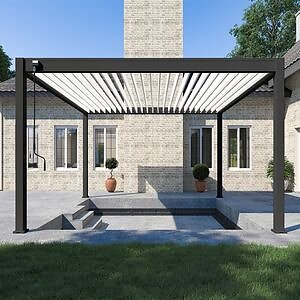 OMBREA Pergola Bioclimatique autoportée 4x4 m Aluminium Anthracite/blanc VS