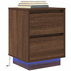 vidaXL Sängbord med LED-lampor brun ek 38x34x50 cm