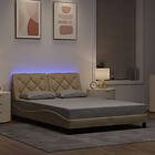 vidaXL Sängram med LED utan madrass gräddvit 140x190 cm tyg