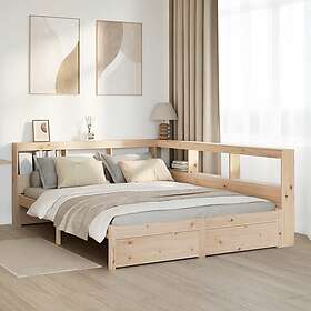 vidaXL Säng med bokhylla utan 150x200cm madrass massiv furu