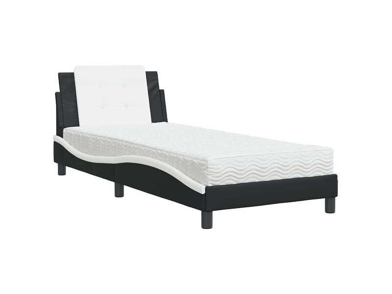 vidaXL Säng med madrass svart och vit 90x190 cm konstläder