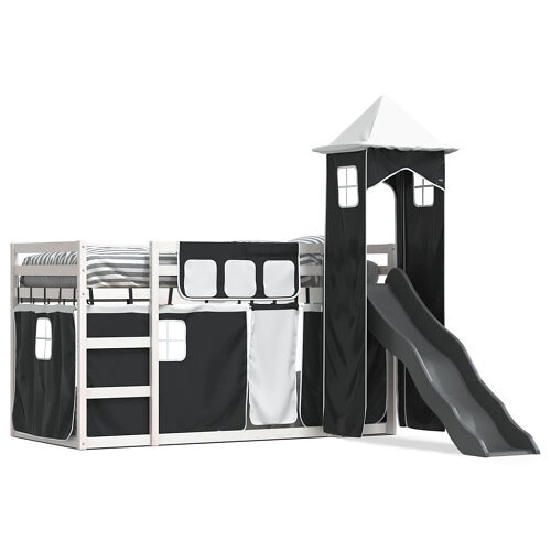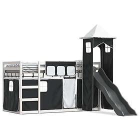 vidaXL Våningssäng med rutschkana och gardiner vit och svart 80x200 cm