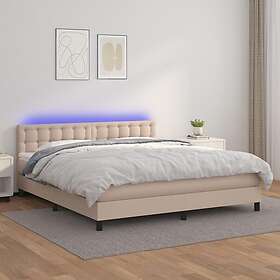 vidaXL Ramsäng med bäddmadrass & LED cappuccino 180x200 cm konstläder