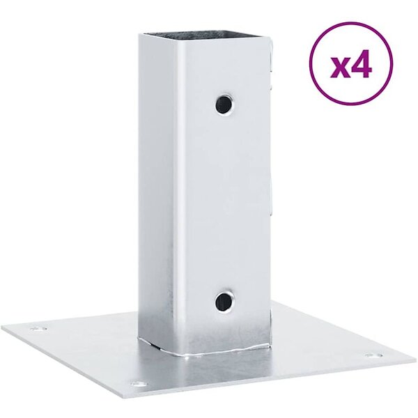 vidaXL Stolpbaser fyrkant 4 st silver 51x51 mm galvaniserat stål