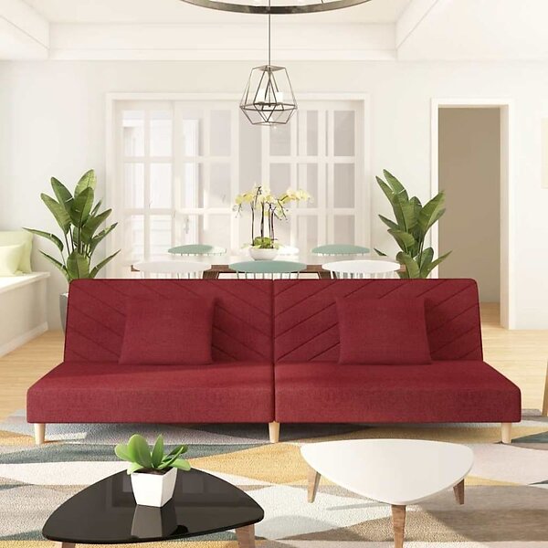 vidaXL Bäddsoffa 2-sits med två kuddar vinröd tyg