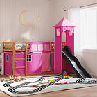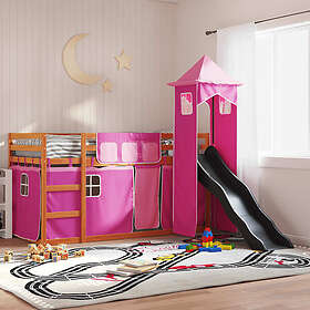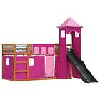 vidaXL Våningssäng med rutschkana och gardiner rosa 90x200 cm