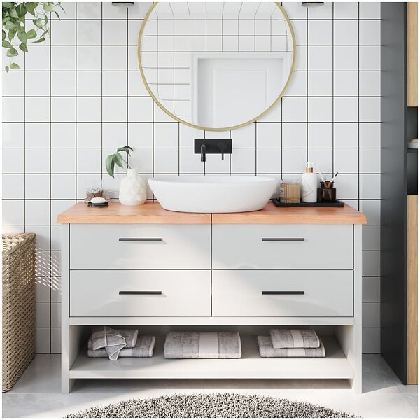 vidaXL Bänkskiva badrum ljusbrun 140x50x(2-4) cm behandlat massivt trä