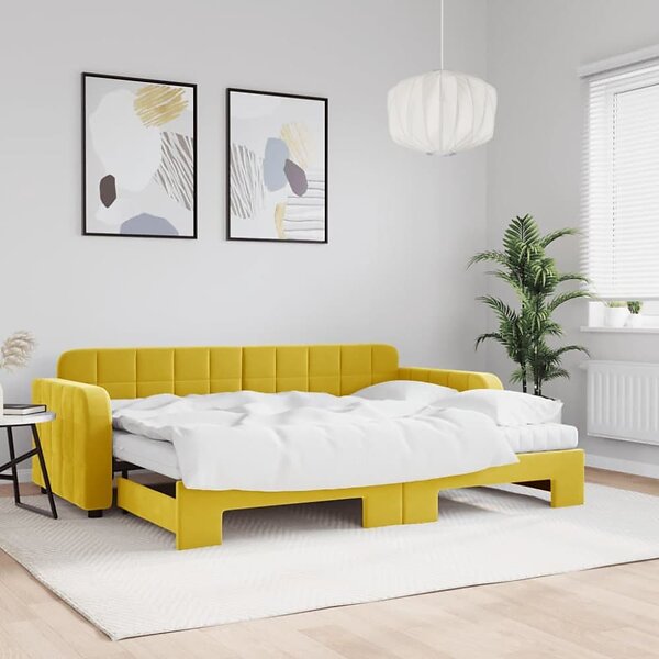 vidaXL Dagbädd utdragbar med madrasser gul 80x200 cm sammet
