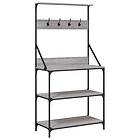 vidaXL Kökshylla med krokar 4 hyllplan grå sonoma konstruerat trä