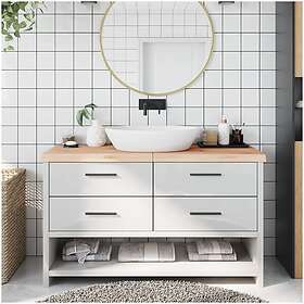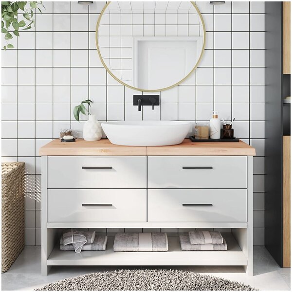 vidaXL Bänkskiva för badrum 140x60x(2-6) cm obehandlat massivt trä