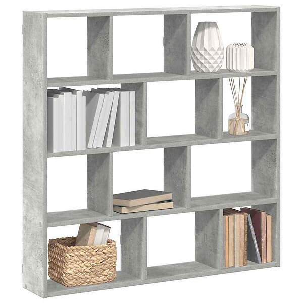 vidaXL Väggmonterad kubhylla 12 fack betonggrå konstruerat trä