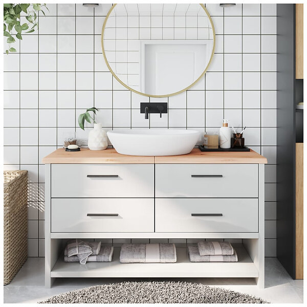 vidaXL Bänkskiva för badrum 140x50x(2-4) cm obehandlat massivt trä