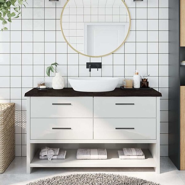 vidaXL Bänkskiva badrum mörkbrun 140x40x(2-4) cm behandlat massivt trä