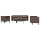 vidaXL Soffgrupp chesterfield 3 delar brun konstläder