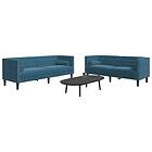 vidaXL Soffgrupp chesterfield 2 delar bolsterkuddar blå sammet