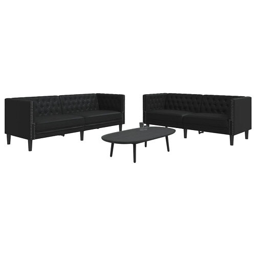 vidaXL Chesterfield Ensemble de canapés 2 pièces Noir Similicuir