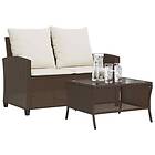 vidaXL Canapé de jardin 2 places avec coussins et table marron polyrotin