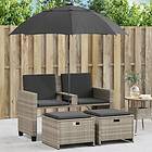 vidaXL Trädgårdssoffa 2-sits med parasoll&pallar ljusgrå konstrotting