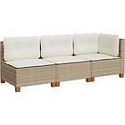 vidaXL Canapé de jardin 3 places avec coussins polyrotin beige