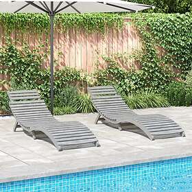 vidaXL Solsäng 2 st grå 184x55x64 cm massivt akaciaträ