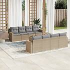 vidaXL Soffgrupp för trädgården med dynor 9 delar beige konstrotting 3251086