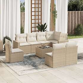 vidaXL Soffgrupp för trädgården med dynor 9 delar beige konstrotting 3251415