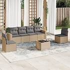vidaXL Matgrupp för trädgården med dynor 7 delar beige konstrotting 3251156