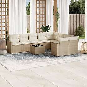 vidaXL Soffgrupp för trädgård med dynor 10 delar beige konstrotting 3251785