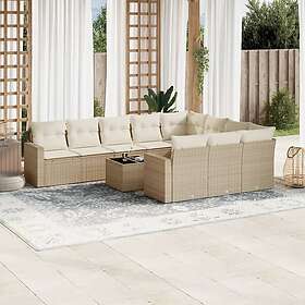 vidaXL Loungegrupp för trädgården m. dynor 11 delar beige konstrotting 3251835