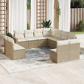 vidaXL Loungegrupp för trädgården m. dynor 11 delar beige konstrotting 3251465