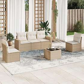vidaXL Soffgrupp för trädgården med dynor 6 delar beige konstrotting 3251135