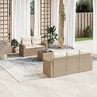 vidaXL Soffgrupp för trädgården med dynor 6 delar beige konstrotting 3251035