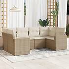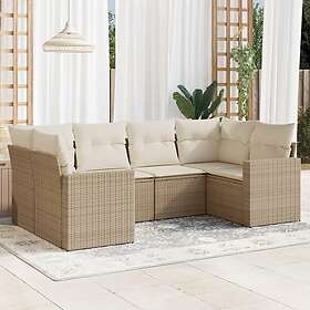 vidaXL Soffgrupp för trädgården med dynor 6 delar beige konstrotting 3251715