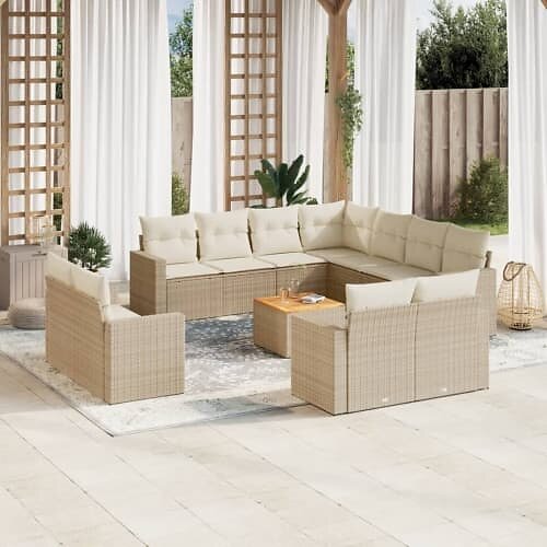 vidaXL Soffgrupp för trädgården 12 delar med dynor beige konstrotting 3224385