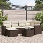 vidaXL Trädgårdssoffset med dynor 7 delar brun konstrotting 3251610