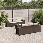 vidaXL Trädgårdssoffset med dynor 7 delar brun konstrotting 3222312