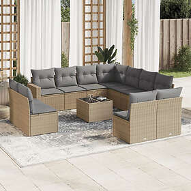 vidaXL Soffgrupp för trädgården 12 delar med dynor beige konstrotting 3251476