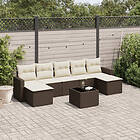 vidaXL Loungegrupp för trädgården med dynor 8 delar brun konstrotting 3251690