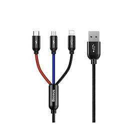Baseus 3en1 Rapid USB 2,0 type A vers Micro USB, Type C & Lightning M/M 1,2m