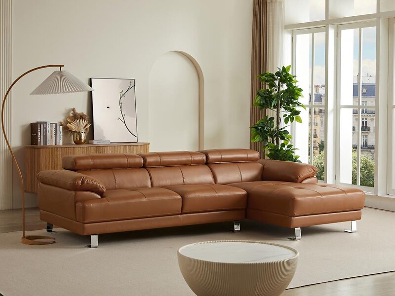 Vente Unique Canapé d'angle droit en cuir premium camel EXCELSIORA