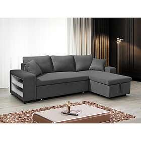 Vente Unique Canapé d'angle convertible et réversible en tissu coffre de rangement et poufs anthracite SELIM