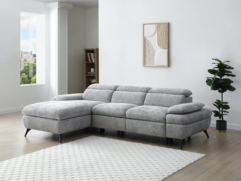 Vente Unique Canapé d'angle gauche convertible en tissu texturé coffre de rangement gris MORAVA