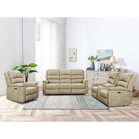Vente Unique Canapés 3 places et 2 places relax électrique en tissu taupe tablette NEVERS