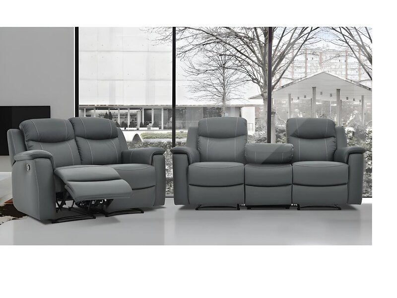 Vente Unique Canapés 3 places et 2 places relax EVASION en cuir gris plateau bar