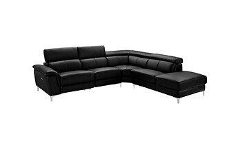 Vente Unique Noir Canapé d'angle relax électrique en cuir SITIA Angle droit