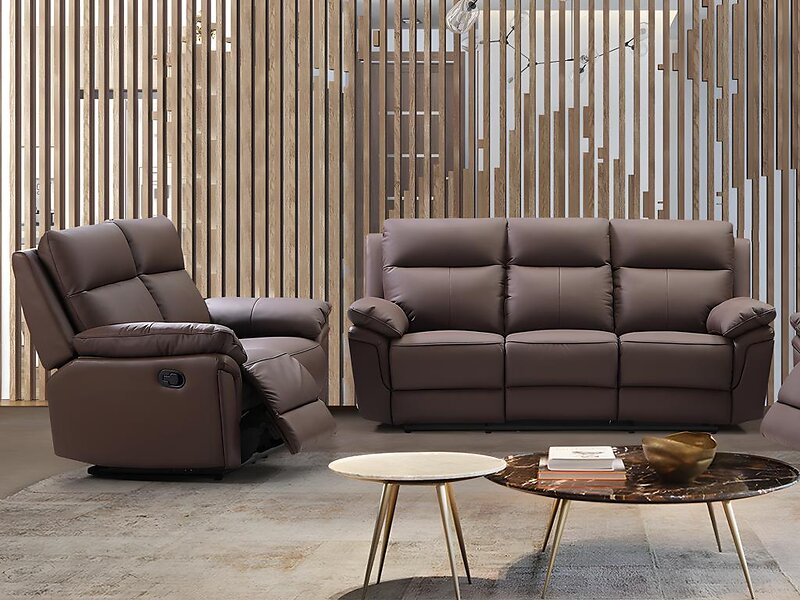 Vente Unique Relax Canapés 3 places et 2 places en cuir de buffle PAKITA Marron