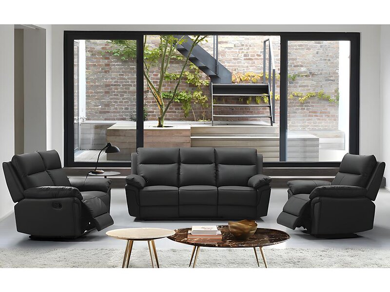 Vente Unique Relax Canapés 3 places 2 places et un fauteuil en cuir de buffle PAKITA Noir