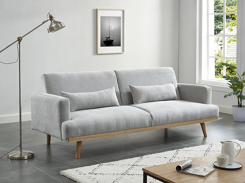 Vente Unique Canapé 3 places convertible clic-clac en tissu ESME Gris clair