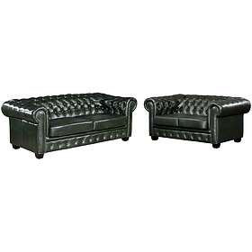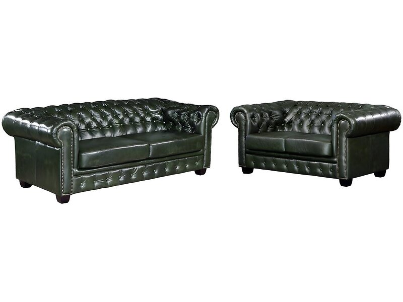 Vente Unique Canapés chesterfield 3 places et 2 places BRENTON 100% cuir de buffle Vert empire
