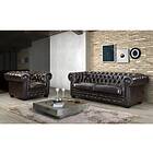 Vente Unique Canapé chesterfield Brenton 3 places et un fauteuil 100% cuir de buffle Marron reflets châtains